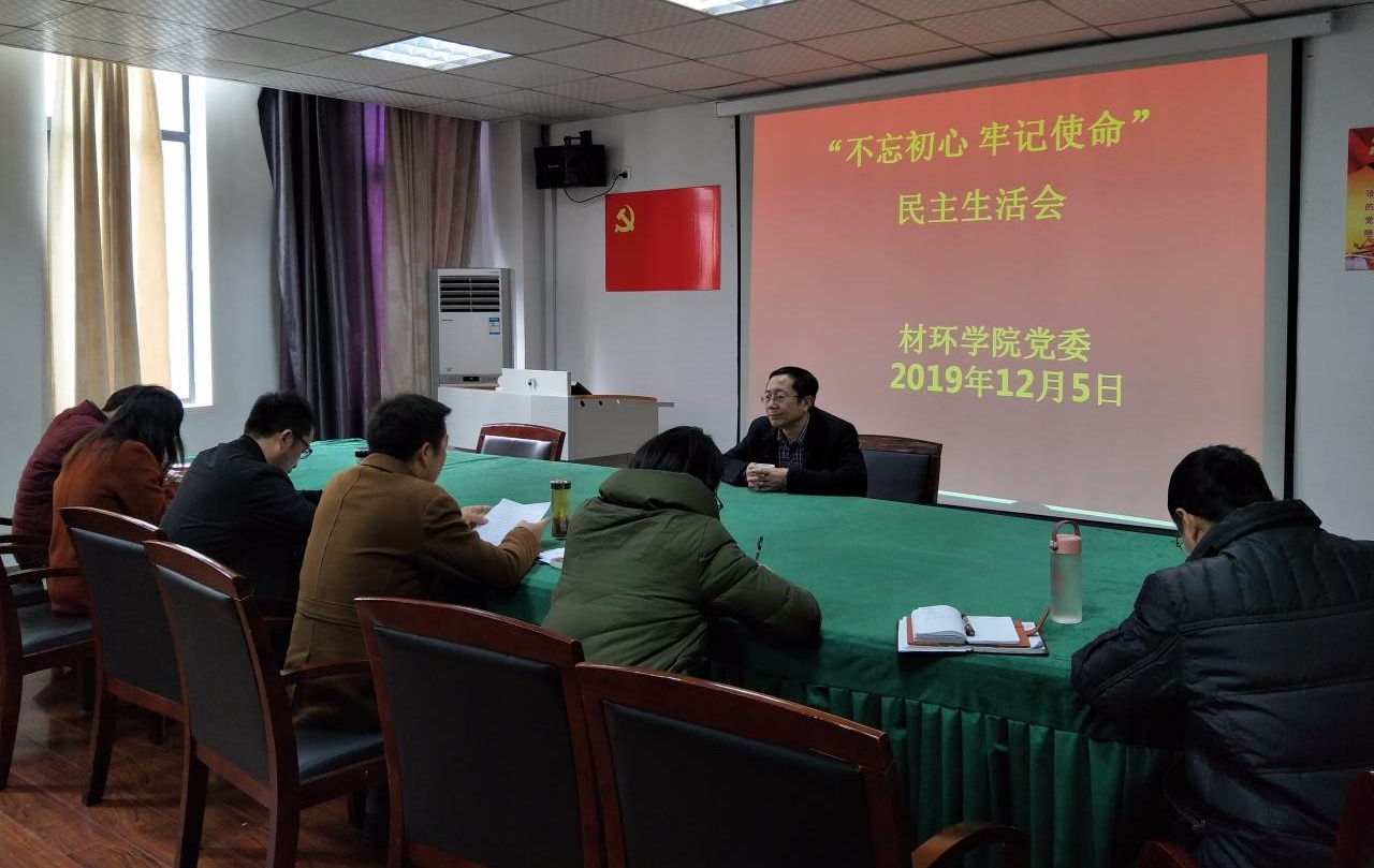 12月5日下午,材料与环境工程学院党委在逸夫楼会议室召开“不忘初心、牢记使命”专题民主生活会,副校长汪贤才出席指导,学院党政领导班子、科级以上干部、党支部书记参加了会议。会议由院党委书记何贵林主持。