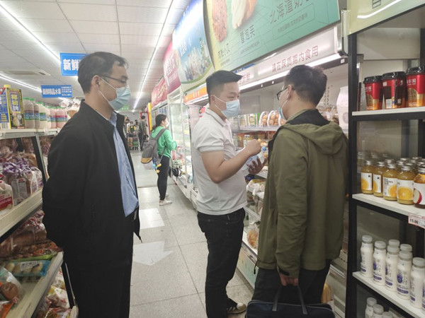在超市,检查组实地检查了学校两所超市,详细询问了供货价格、销售等情况。检查组要求,要加强日常内部管理,明码标价、依法经营、诚信经营、追溯有源、过程可控、价格自律,认真做好保供稳价、消毒清洁、疫情防控等工作。