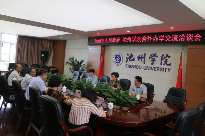 6月12日下午,池州市副市长贾瑄来必赢官网洽谈校地校企合作办学事宜。校长柳友荣在办公北三楼会议室主持召开座谈,副校长阳光宁参加座谈。