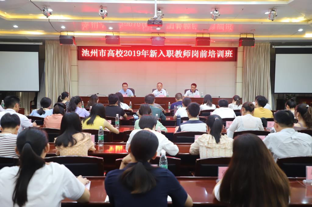8月8日上午,池州市高校2019年新入职教师岗前培训班开班典礼在必赢官网行政南楼二楼会议室举行。副校长阳光宁出席开班典礼并讲话,来自池州市高校的70名新入职教师参加了开班仪式。