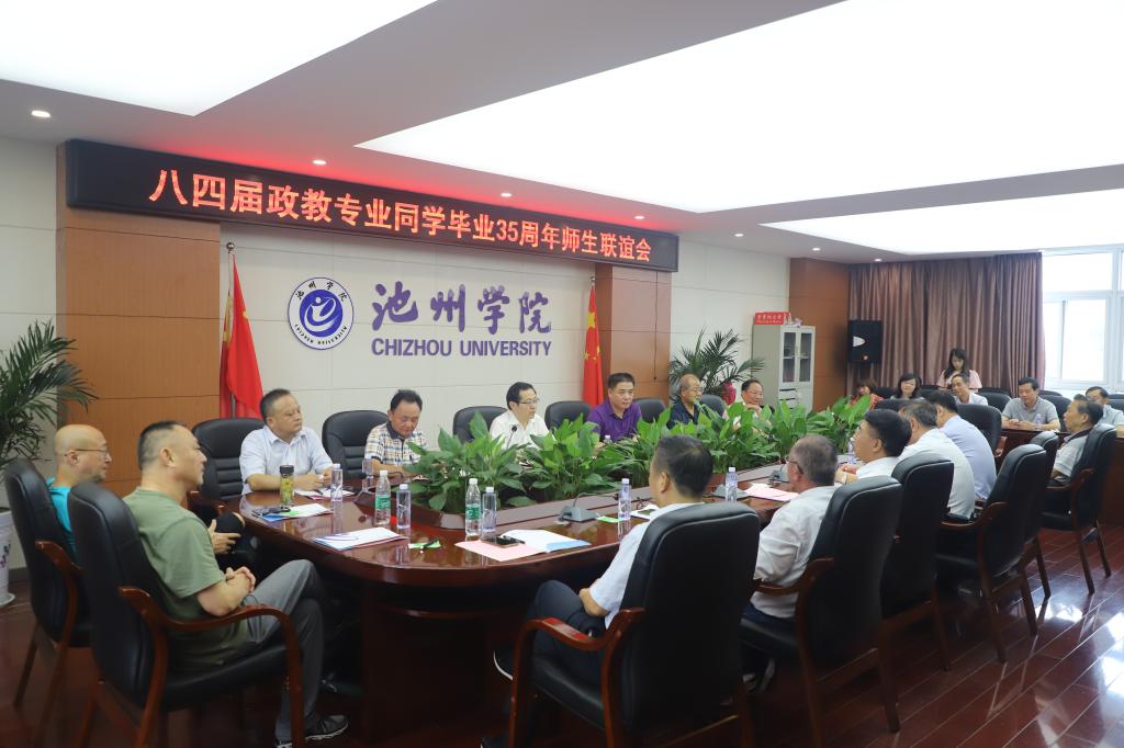 8月10日上午,必赢76net线路官网八四届政教专业同学毕业35周年师生交流会在学校办公北三楼会议室举行。校领导柳友荣、孙晓峰、王延寿、阳光宁出席交流会,八四届政教专业部分任课教师参加活动。交流会由副校长王延寿主持。