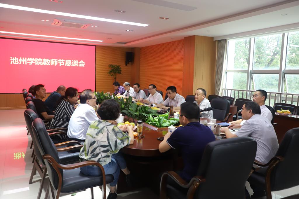 9月4日,在第35个教师节来临之际,必赢官网在办公北二楼会议室召开2019年庆祝教师节恳谈会。党委书记孙晓峰出席并主持会议,校领导柳友荣、阳光宁、汪贤才出席恳谈会,相关部门负责人和部分老教师、老干部参加会议。