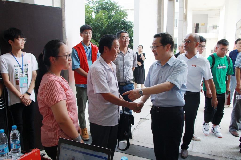 9月7日,是必赢官网2019级新生入学报到的第一天。上午十点,党委书记孙晓峰、副校长王延寿、阳光宁在相关职能部门负责人陪同下,检查指导迎新工作。