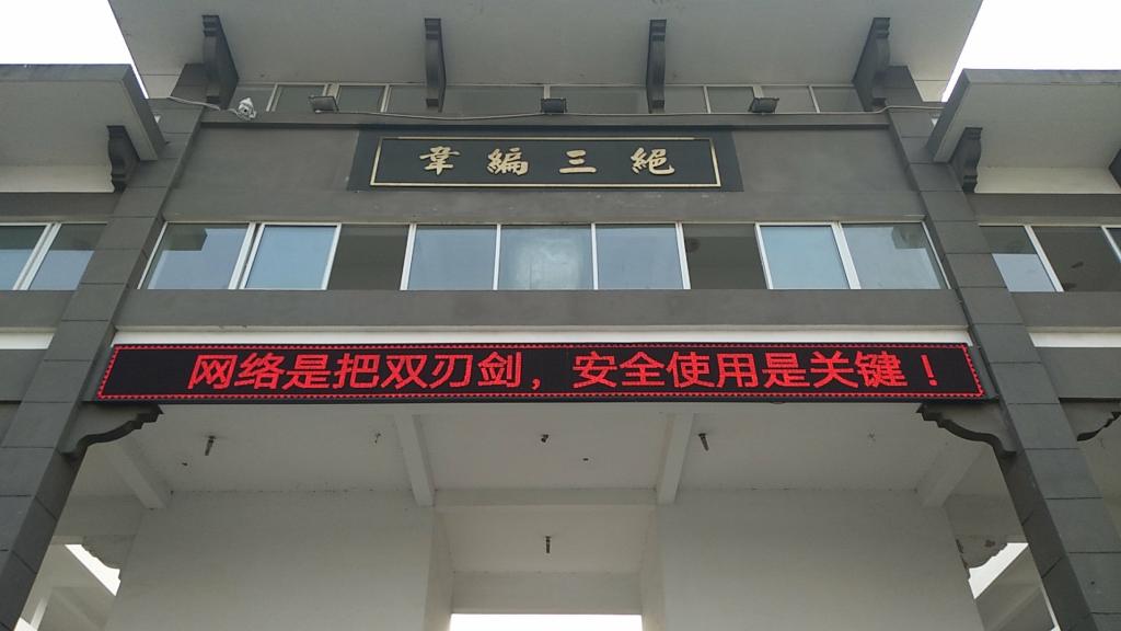 在各学院教学楼前,学校利用电子显示屏滚动播放国家网络安全宣传标语进行宣传教育。除此之外,在新生入学后,学校还组织开展了国家网络安全主题教育,进一步增强学生的网络安全意识和应辨能力。