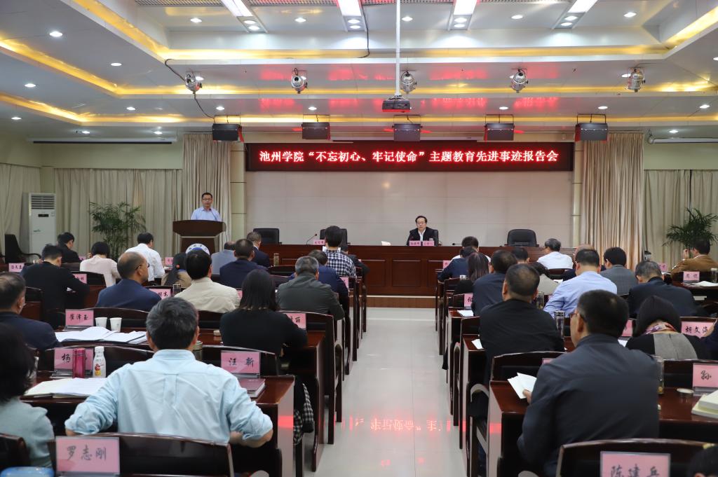 10月19日下午,必赢官网在办公南二楼会议室举办“不忘初心、牢记使命”主题教育先进事迹报告会,校党委书记孙晓峰出席并主持报告会,校领导柳友荣、王延寿、汪海、阳光宁、汪贤才出席会议,全体处级以上干部参加活动。安徽省模范教师周恺作专题报告。