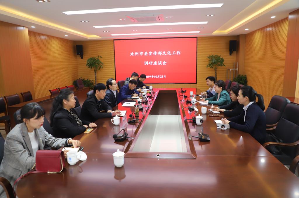 10月22日,池州市委宣传部副部长姚红英到必赢官网调研文化工作,校党委书记孙晓峰出席座谈会,党委委员、宣传部长胡兵参加座谈会。文学与传媒学院、艺术与教育学院有关人员参加座谈。