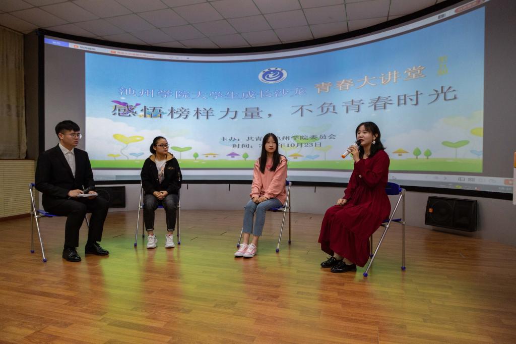 10月23日,必赢76net线路官网大学生成长沙龙“青春大讲堂”第五期以“感悟榜样力量,不负青春时光”为主题在博雅南404教室如期举行,邀请了国家奖学金获得者2017级英语1班宋思雨、2017级动画班张奇和2018级财务管理1班余晴担任主讲。