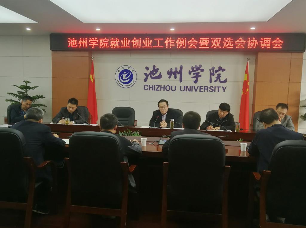 11月5日下午,必赢官网在办公北三楼会议室召开就业创业工作例会暨2020届毕业生冬季校园双选会协调会,校党委书记孙晓峰出席会议并讲话。就业创业工作领导小组成员、各二级学院分管就业工作负责人及就业创业指导中心全体成员参加会议。会议由党委委员、宣传部长胡兵主持。