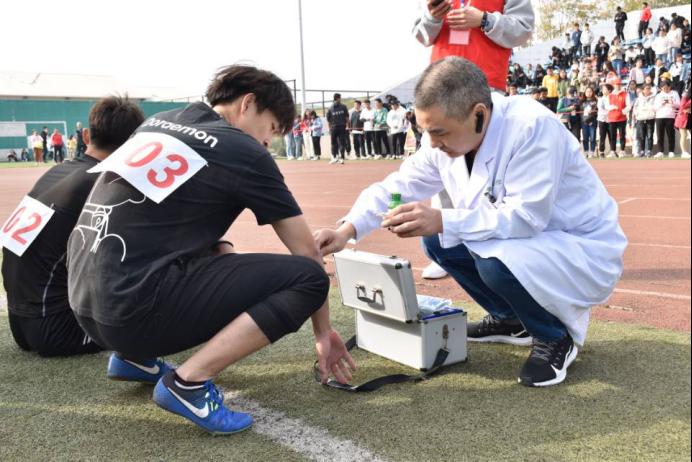 运动员不小心的擦伤,医护人员赶紧前去包扎,细心处理伤口,为运动健儿们提供放心的安全保障服务。