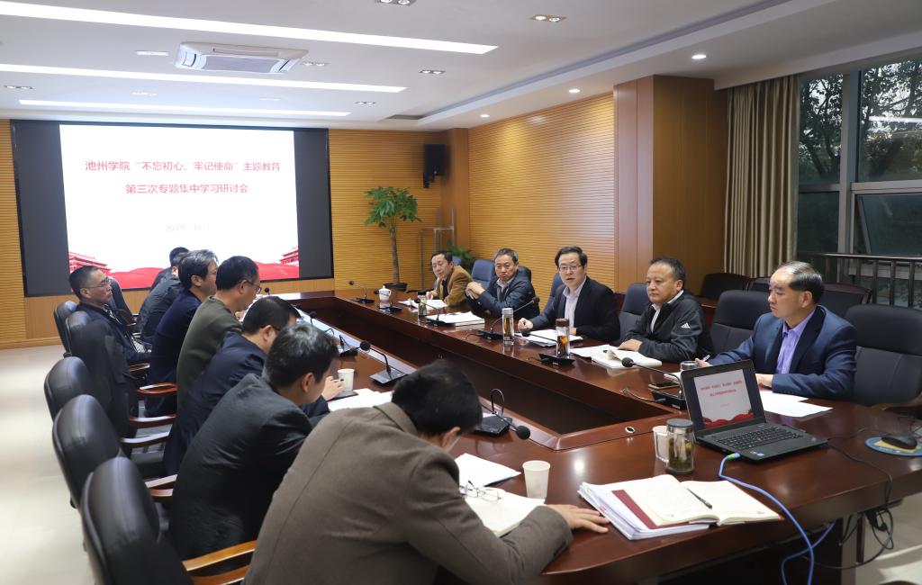 会议传达学习了省委第十二巡回指导组所指导高校主题教育负责人座谈会精神,传达学习了省委教育工委、省教育厅通报的相关警示教育案例文件精神,集中学习了《习近平总书记在庆祝中华人民共和国成立70周年大会上的讲话》《习近平总书记在国家勋章和国家荣誉称号颁授仪式上的重要讲话》精神,集中学习了《关于实行党风廉政建设责任制的规定》等党内重要法规。