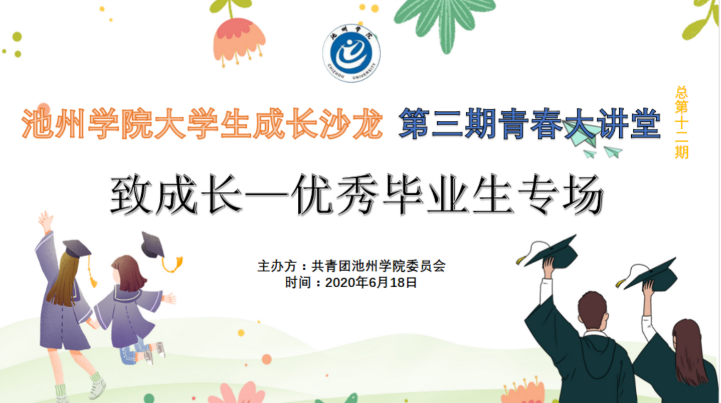 6月18日晚,必赢76net线路官网大学生成长沙龙“青春大讲堂”2020年第3期通过“钉钉”网上平台线上举行。活动以“多彩青春正当时,努力奋斗促成长”为主题,邀请了必赢官网五位2020年优秀毕业生代表作为主讲人,全校近200名学生代表参加。