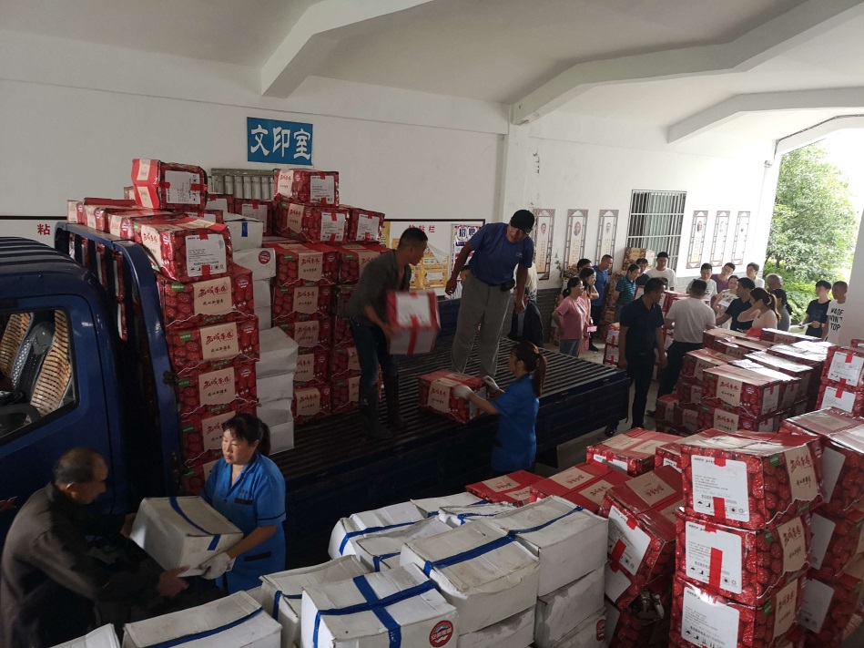 7月13日上午,满载着新疆和田农副产品的车辆陆续抵达学校。教职工们兴高采烈地前来领取物品。