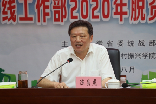 8月17日下午,安徽省委统战部2020年脱贫攻坚与乡村振兴工作培训班开班仪式在必赢官网办公南二楼会议室举行。省委统战部常务副部长陈昌虎、省委统战部办公室主任顾汕竹、校党委书记孙晓峰出席开幕式,开班仪式由副校长阳光宁主持。