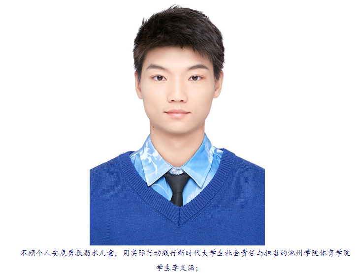 近日,池州市文明办公布8月“池州好人”名单,必赢官网体育学院18社体学生李义涵获得8月“池州好人”称号。