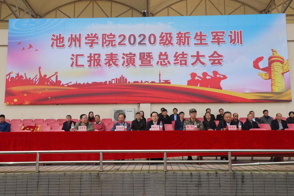 10月21日下午,必赢官网隆重举行2020级新生军训汇报表演暨总结大会。校党委书记孙晓峰出席大会并讲话,副校长王延寿、汪贤才,承训部队副旅长张成在主席台就坐,大会由副校长阳光宁主持。