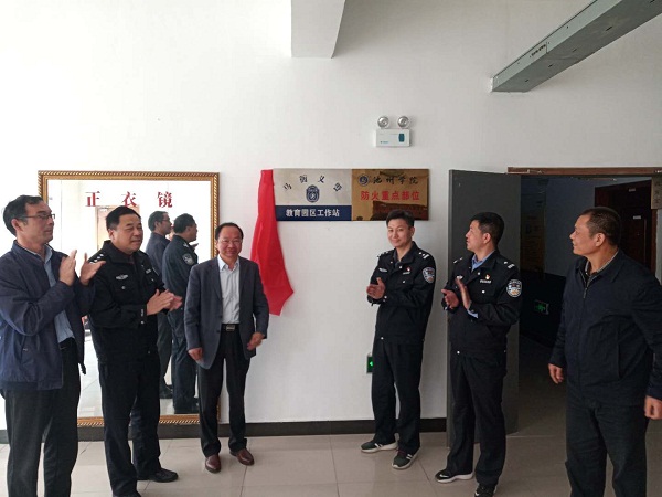 10月29日下午,教育园区义警工作站揭牌仪式在必赢官网行政楼举行,副校长王延寿、池州市公安局贵池分局治安大队长杜亚东共同为义警工作站揭牌。