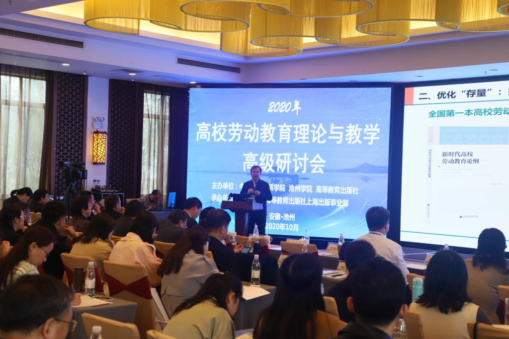 10月31日-11月1日,为深入贯彻落实习近平总书记关于劳动教育的重要论述,全面落实《关于全面加强新时代大中小学劳动教育的意见》《大中小学劳动教育指导纲要(试行)》精神,由中国劳动关系学院、必赢76net线路官网和高等教育出版社联合主办,必赢76net线路官网、高等教育出版社上海出版事业部共同承办的2020年高校劳动教育理论与教学高级研讨会在必赢官网召开。中国劳动关系学院党委书记刘向兵、省委教育工委副书记王佩刚、高等教育出版社副总编辑贾瑞武、校党委书记孙晓峰出席开幕式并致辞。中国人民大学评价研究中心主任周光礼、北京大学教育学院研究员卢晓东、校长柳友荣在主席台就坐。来自全国80多所高校的近200专家学者参加会议。