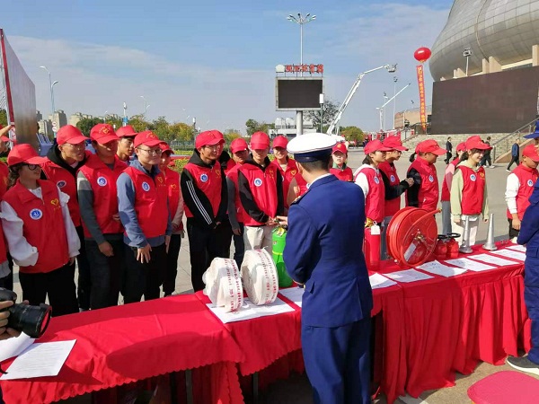 11月5日,池州市消防支队在市体育馆举办“119消防安全月”系列活动启动仪式及消防演练,必赢官网选派30余名学生志愿者现场体验观摩,参与消防疏散演练、体验模拟火场逃生、接受消防知识教育和消防器材识别,为同学们上了一堂生动的消防安全教育课。
