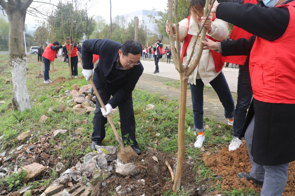 与此同时,学校结合植树活动开展劳动教育,120余名学生志愿者在专业人员的指导下学习植树技巧,亲身体验劳动的辛劳和乐趣。