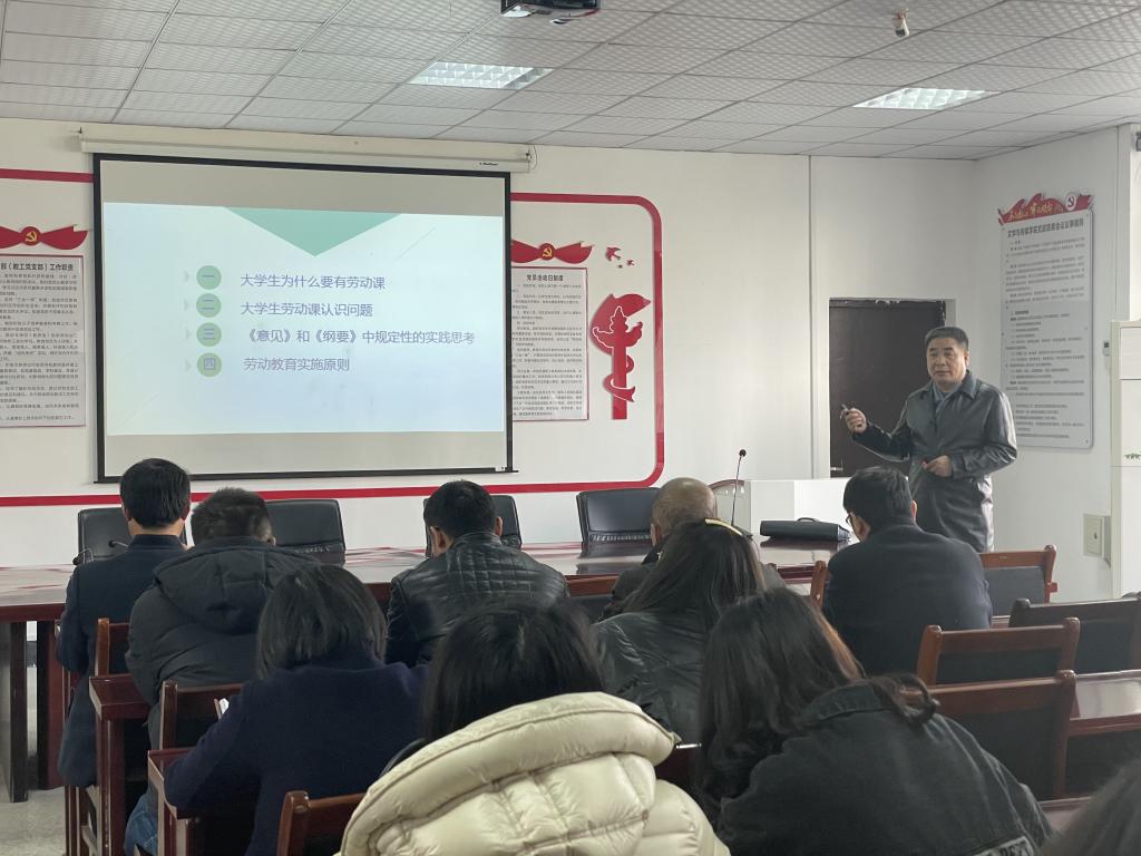 为进一步提升必赢官网《大学生劳动素养教育》课程的教学质量和教师的教学水平,3月12日下午,学校举办《大学生劳动素养教育》课程授课教师专题培训。校长柳友荣为参会教师做专题培训。