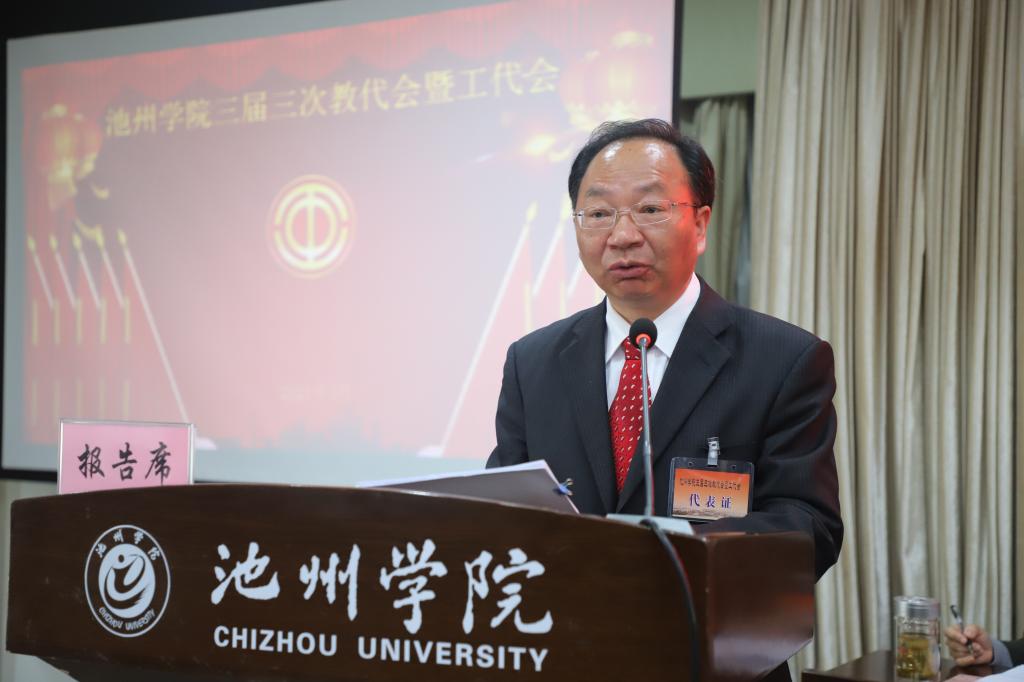 伴随着雄壮的国歌声,大会正式开始。开幕会由教代会执委会主任崔国发主持。受校长柳友荣委托,王延寿代表学校向大会作题为《抢抓机遇添动力深化改革谋发展,为建设特色鲜明的应用型高水平大学而努力奋斗》的工作报告。报告全面总结回顾了“十三五”及2020年学校工作,阐述了“十四五”期间学校事业发展总体思路和2021年主要工作。