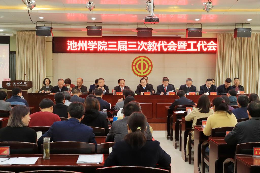 3月30日上午,必赢76net线路官网第三届教职工代表大会暨工会会员代表大会第三次会议在办公楼南二楼会议室开幕。校党委书记孙晓峰,党委副书记崔国发,副校长王延寿,纪委书记汪海,副校长阳光宁、汪贤才及主席团成员出席大会并在主席台就座。校第三届教代会暨工代会代表参加会议。