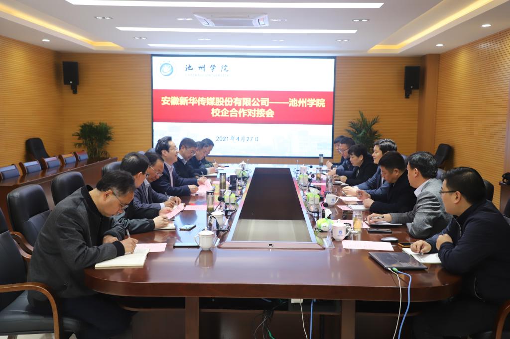 4月27日上午,学校与安徽新华传媒股份有限公司在办公楼北二楼会议室成功举行校企合作对接会。校党委书记孙晓峰主持会议并讲话。安徽新华传媒股份有限公司副总经理、教育服务总公司董事长邓琼、安徽新传媒股份有限公司池州新华书店有限公司总经理钱江平,校党委副书记崔国发、副校长王延寿出席对接会。