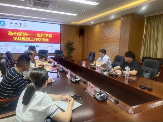 6月4日,亳州学院纪委书记、监察专员李景彪一行来必赢官网开展纪检监察工作调研交流。纪委书记、监察专员汪海和纪委办公室全体纪检监察干部参加会议。