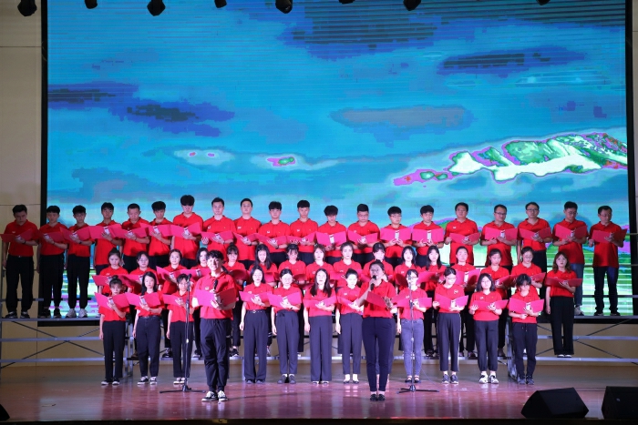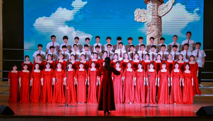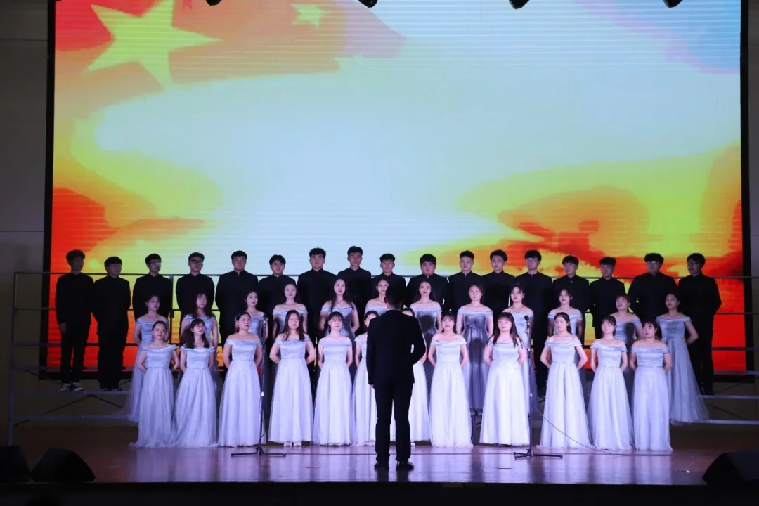 商学院带来的歌曲《我的祖国》以饱满的热情歌颂了对祖国母亲深沉的爱;大数据与人工智能学院表演的《地道战》采用舞台剧的形式,带领观众重回战火纷飞的峥嵘岁月;体育学院表演的歌曲《国家》歌颂了中国共产党团结带领全国各族人民勇往直前、锐意进取而取得的伟大成就;机电工程学院将手语和合唱相融合,在《强国一代有我在》表演中展现了青年人在危难关头挺身而出的坚定信念;材料与环境工程学院通过《我爱你,中国》向祖国母亲深情告白;艺术与教育学院带来的《在灿烂的阳光下》播撒了无限希望,激励着大家不断踏上新的征程;马克思主义学院带来的歌曲《映山红》表达了对红军战士的深切怀念和崇高敬意;外国语学院歌曲《我和我的祖国》唱出了血脉相连的家国情怀;旅游与历史文化学院带来的《同一首歌》展现了全国人民紧密相连的深厚情感……比赛中间还穿插了集体舞蹈和诗歌朗诵,精彩的演出,不时引得现场观众雷鸣般的掌声。
