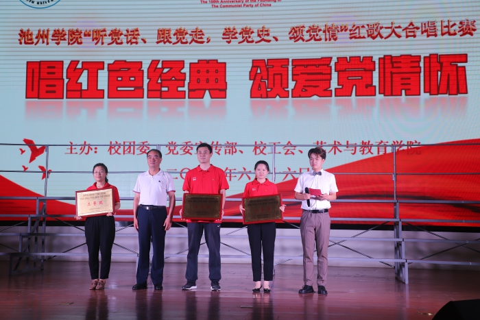 经过激烈的角逐,最终艺术与教育学院荣获一等奖,商学院、旅游与历史文化学院荣获二等奖,体育学院、外国语学院、材料与环境工程学院荣获三等奖。校党委书记孙晓峰,校党委副书记崔国发,校党委委员、组织部部长李恕宏分别为获奖的学院颁奖。