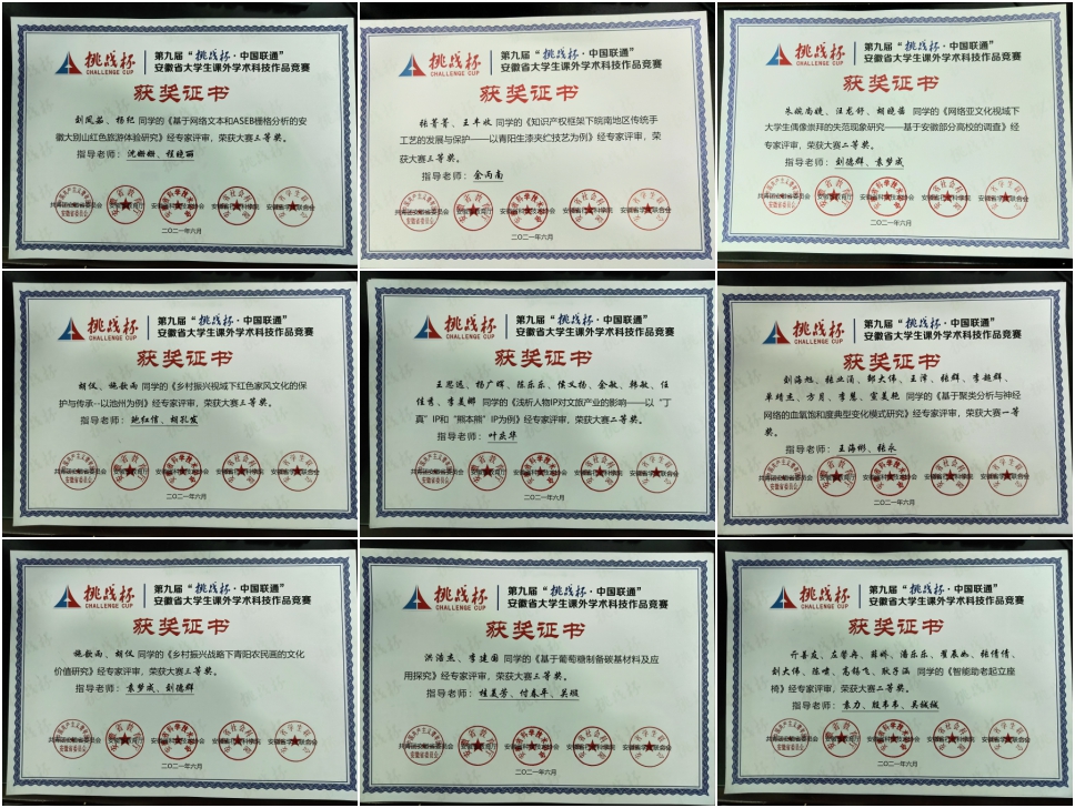 6月21日,第九届“挑战杯•中国联通”安徽省大学生课外学术科技作品竞赛决赛在安庆师范大学圆满落幕。必赢官网报送的作品共计获得一等奖1项、二等奖3项、三等奖6项。