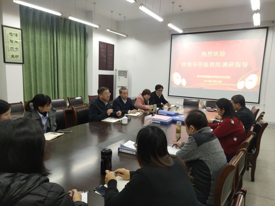 10月20日下午,校党委副书记崔国发,校党委委员、纪委书记、监察专员汪海到旅游与历史文化学院督导调研党建、意识形态与文明创建工作。