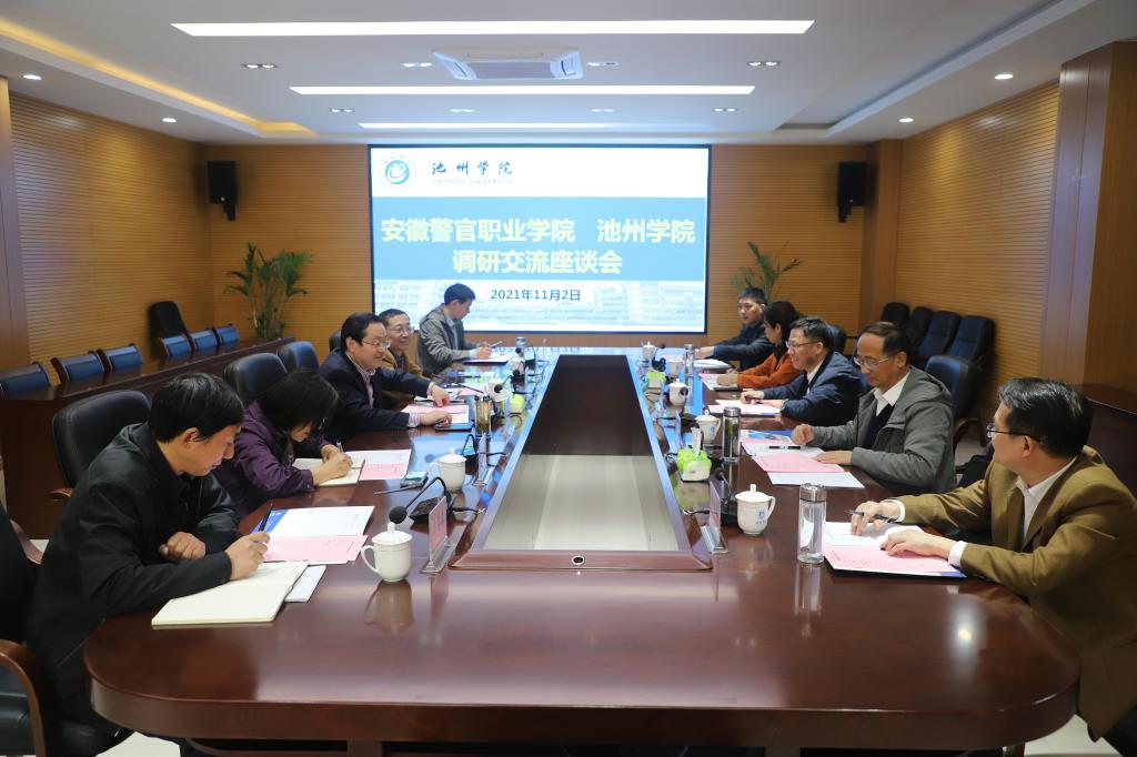 11月2日下午,安徽警官职业学院院长操申斌、副院长周善来等一行5人来必赢官网调研交流。校党委书记孙晓峰主持座谈会并讲话,副校长汪贤才出席座谈会。