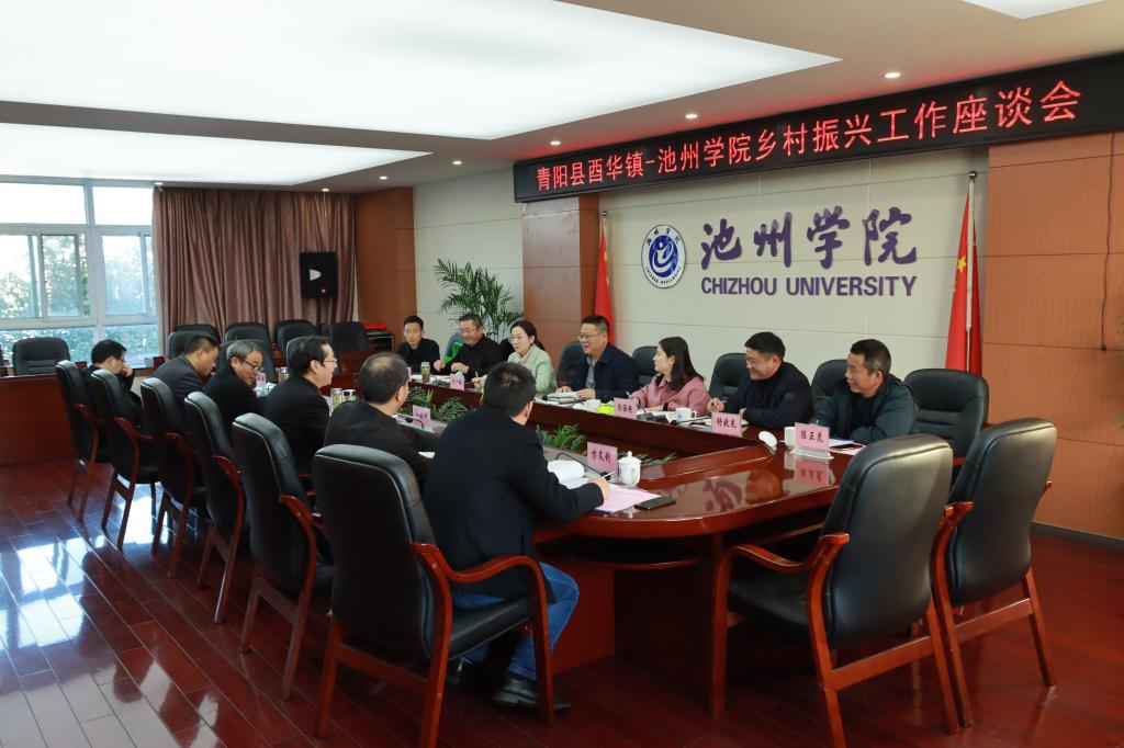 11月25日下午,青阳县酉华镇党委书记汪兴华一行7人来必赢官网对接乡村振兴工作。校党委书记孙晓峰出席座谈会并讲话,校党委委员、纪委书记、监察专员汪海,校党委委员、组织部部长李恕宏出席座谈会。
