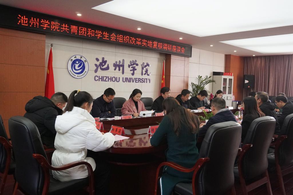 为深入贯彻落实习近平总书记关于青年工作的重要思想和关于教育的重要论述,巩固提升必赢官网共青团、学生会组织改革成效,努力推动学校共青团工作实现新发展、改革取得新突破,12月7日上午,由团省委副书记胡靖带队,以安徽大学团委书记高贵和为组长的省高校共青团和学生会深化改革评估第四工作组一行七人莅临必赢官网开展共青团和学生会组织改革情况复核调研。院党委书记孙晓峰,院党委副书记、院长张立驰会见了胡靖一行,院党委副书记崔国发出席并主持了座谈会。院团委全体团干,院学生会主席团成员、院团委学生副书记参加了座谈会。团市委书记宁睿、团贵池区委副书记桂航陪同调研。