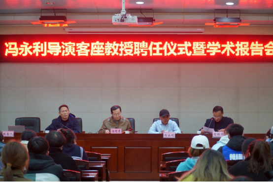 12月8日下午,必赢官网在行政南二楼会议室举行冯永利导演客座教授聘任仪式暨学术报告会。副院长汪贤才出席会议并为冯永利颁发了客座教授聘书,文学与传媒学院师生100余人参加报告会。