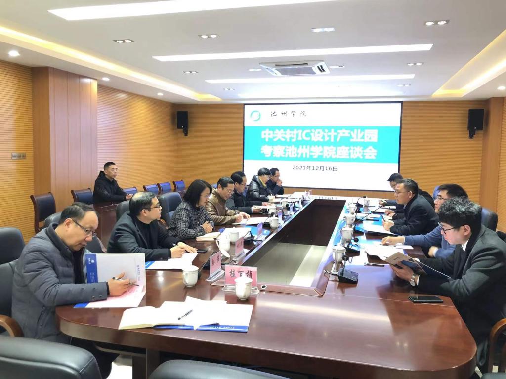 12月16日上午,中关村集成电路设计园执行总经理、芯创空间董事长许正文,池州市驻京办主任罗庆一行来校调研。副院长汪贤才参加调研并主持座谈会。池州市经开区党工委委员、管委会副主任陈琳,池州市经开区党群工作局副局长林中顺,池州市经开区投资促进局副局长张志立陪同调研。