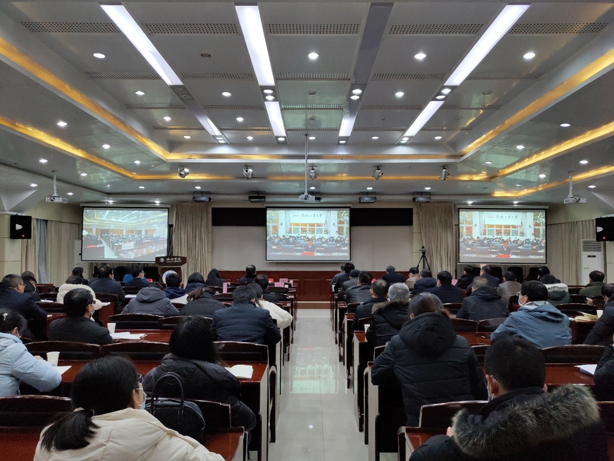 1月10日下午,省教育厅、省人力资源和社会保障厅联合召开2022届全省高校毕业生就业创业工作推进会网络视频会议,省委教育工委副书记、省教育厅厅长赵振华,省人力资源社会保障厅副厅长刘少华出席会议并讲话,省教育厅副厅长解平主持会议。学校在办公南二楼会议室设立分会场,院党委书记孙晓峰、院长张立驰、副院长汪贤才,相关部门负责人,各二级学院党政负责人及2022届毕业班辅导员按照疫情防控要求在分会场参加了视频会议。