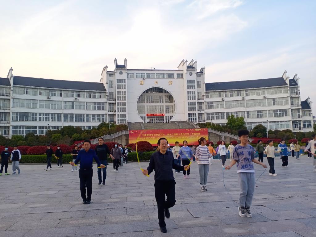 近日,学校开展了“青春爱运动 健康强中国”全民健身活动,号召学生积极参加阳光体育运动,教育和引导学生在运动锻炼中享受乐趣、增强体质、健全人格。校党委书记孙晓峰与学生共同参加了跳绳活动,勉励大家加强体育锻炼,提升身体素质,争做新时代奋发有为的新青年,努力成长为德智体美劳全面发展的社会主义建设者和接班人。
