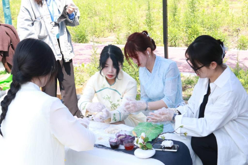 樱花怒放满园春,玉琼点点淡香凝。古筝表演、汉服走秀、歌曲演唱等活动正式拉开了本次游园会的帷幕。活动现场,社团活动精彩纷呈,平天诗社看图猜诗,雅集阔论;清泉书画社收集落樱,与现场的同学一起制作精美书签,写下有关春天的诗句;禅茶社向同学们讲解传统制茶过程,增进同学们对茶的认识;徽韵民乐社拨动古筝,带领同学们体验民乐之美……