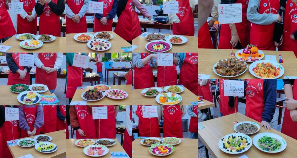 活动现场,参赛选手们随机抽取食材“盲盒”,在规定时间内各显其能,完成主题菜品制作和介绍展示,进行一场“色香味”的大比拼。各参赛团队成员身着定制专业厨师服,团结协作、合理分工,切菜、配料、下锅、摆盘,忙得不亦乐乎。现场飘香四溢,一道道精致美味的菜肴、一碟碟富有创意的拼盘陆续端上展示台,令现场观众垂涎欲滴。经评委打分,最终艺术与教育学院代表队摘得桂冠,体育学院代表队、旅游与历史文化学院代表队获得二等奖,商学院代表队、地理与规划学院代表队以及马克思主义学院代表队获得三等奖,材料与环境工程学院代表队等五个团队获得优秀奖。