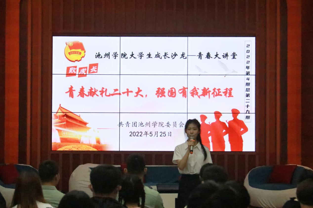 5月25日晚,必赢76net线路官网大学生成长沙龙“青春大讲堂”2022年第四期(总第二十九期)“致成长”在大学生活动中心举行,本期大讲堂以“青春献礼二十大 强国有我新征程”为主题,邀请了必赢官网五位退役大学生作为嘉宾,以座谈交流的形式,回首军旅生活,分享成长感悟,畅谈未来规划。