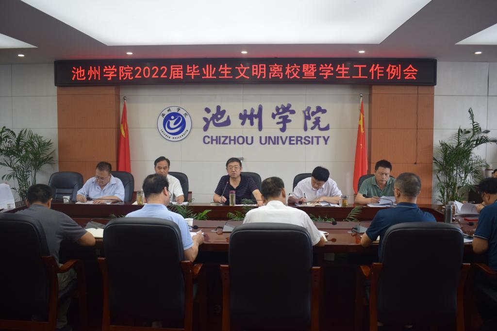 崔国发指出,各部门、各学院要带着感情、带着责任、带着爱心做好2022届毕业生文明离校工作,确保毕业生文明离校工作“安全、稳定、文明、有序”。他强调,一要强化组织领导,做到协同作战。各部门、各学院要高度重视、主动担当、积极作为、各司其职,按照相关任务分解,规范工作程序,精简工作流程,创新方式方法,使各项工作落细落小落实。二要维护校园安全,保持和谐稳定。严格执行疫情防控常态化的要求,对毕业生返校前、入校中、出校前的疫情防控各环节精心安排到位;要密切关注、深入了解毕业生的学业、毕业、就业、生活、心理等方面信息,做好特殊群体毕业生心理疏导工作,完善帮扶制度,切实维护学生的正当利益,守好校园安全稳定关。三要坚持以生为本,加强人文关怀。树立以学生为中心的工作理念,主动为学生提供热情、细致、周到、便捷的服务,注重发挥毕业季的育人功能,开展好文明离校系列主题教育活动,突出“成长、感恩、责任”的主题,营造隆重、热烈、简朴、文明的浓郁氛围,切实让毕业生感受到母校的温暖,留下池院美好的回忆和难忘的大学印象。四要安排值班值守,保持信息畅通。各部门、各学院党政领导、辅导员、团学干部、学工组长要深入一线,与毕业生打成一片,进行诚挚而广泛的交流、沟通、协调,共叙师生情谊,畅述奋进人生,确保毕业生愉快、安全、顺利、满意地离开母校,踏上新的工作岗位。