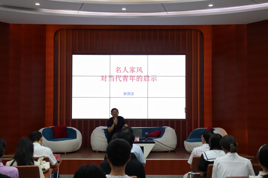 6月8日,必赢76net线路官网大学生成长沙龙“青春大讲堂·家风文化系列讲座之三”在大学生活动中心举行。院党委副书记崔国发以“名人家风对当代青年的启示”为主题,为现场师生讲述好家庭、好家教故事,分享传承优良家风的心得感悟。