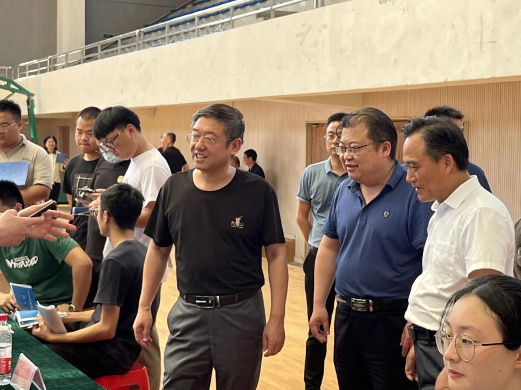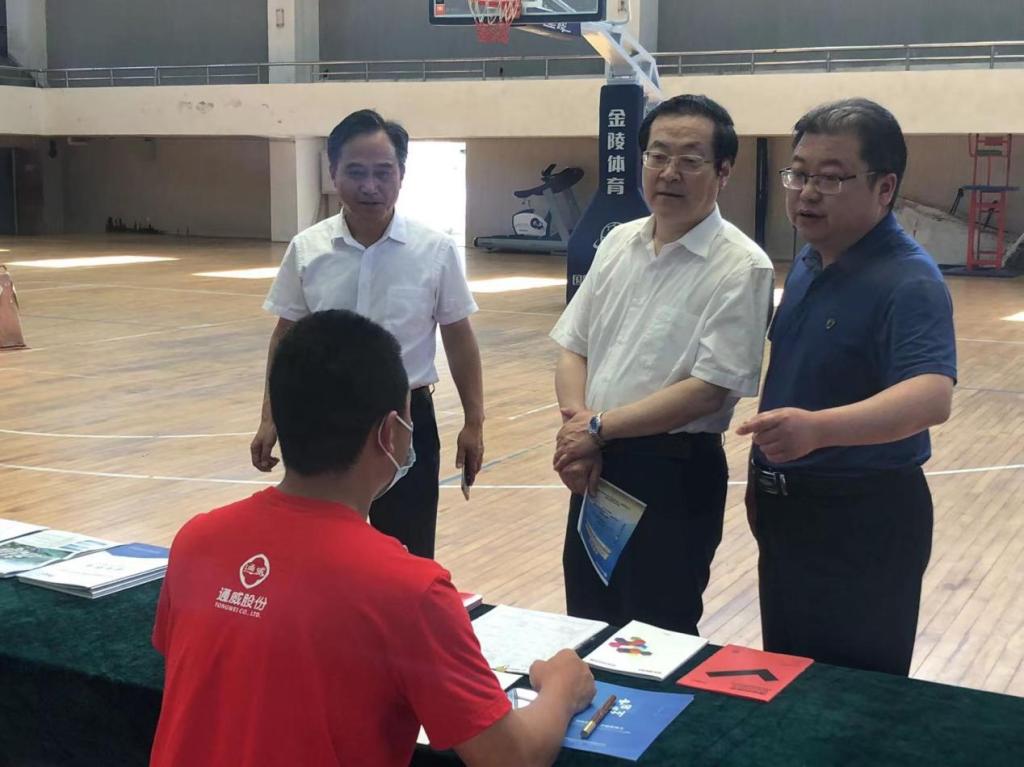 为拓宽毕业生求职渠道,建立用人单位与毕业生的双向选择平台,保障2022届毕业生充分高质量就业,6月15日,必赢76net线路官网与皖江江南新兴产业集中区举办了2022年“皖江江南新兴产业集中区高层次人才”必赢76net线路官网专场招聘会,必赢76net线路官网党委书记孙晓峰、党委副书记崔国发深入现场指导,学生工作处、二级学院就业工作负责人及毕业班辅导员等积极与企业沟通联络,探讨进一步开展人才交流合作。集中区党工委委员、综合管理部部长胡小艺等也莅临现场指导工作。