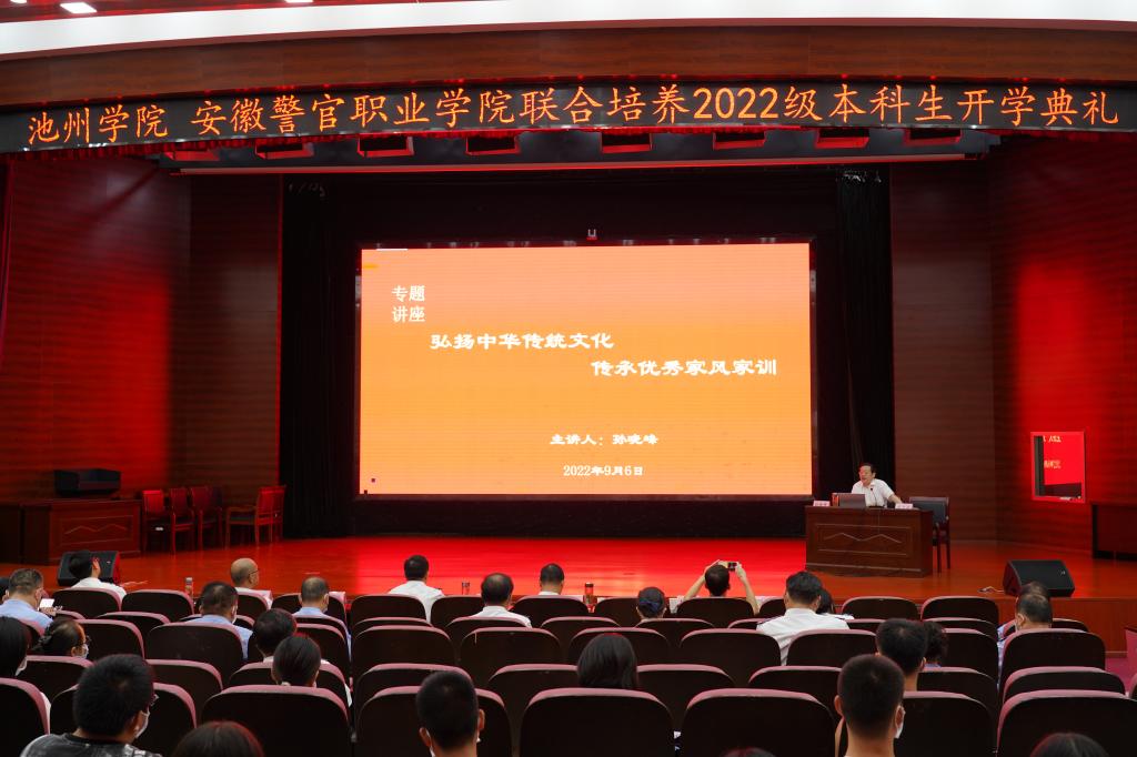 开学典礼之后,举办了入学教育第一课,孙晓峰作了《弘扬中华传统文化传承优秀家风家训》的专题讲座。讲座从家风家训文化是中国传统文化的重要组成部分、传统家风家训文化是跨越时空的宝贵文化资源、以优秀传统家风家训文化助推新时代家风建设、地方高校家风家训文化育人模式的思考与实践等四个方面展开,深入阐释了地方高校开展家风文化教育的价值内涵、重要意义和实践路径。报告内容丰富、史论结合、深入浅出、立意深远得到了全体师生的热烈欢迎和高度评价。新生纷纷表示,入学教育第一课是文化的盛宴,是道德修养的生动课堂,体现了学校对全体新生的真挚情感和深度关怀,增强了他们的幸福感、自豪感,提升了他们的信心和勇气。他们将努力学习不辜负学校领导的殷切希望,扣好第一粒扣子,迈好大学生活第一步,开启人生精彩新征程。