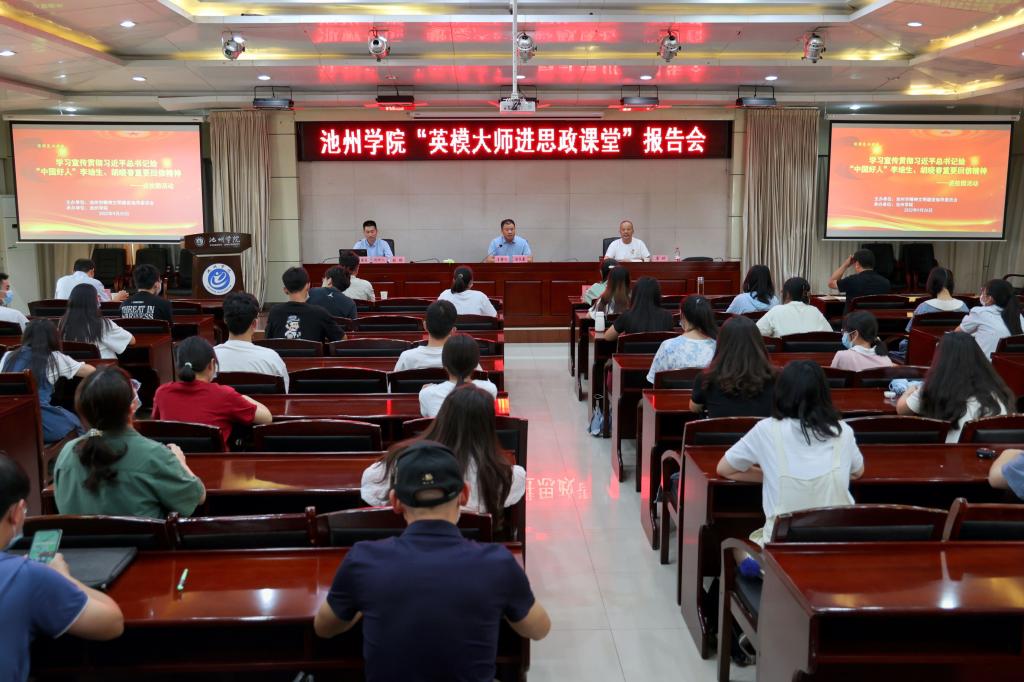 9月20日下午,学校在行政楼南二楼报告厅举办“英模大师进思政课堂”活动。特邀全国道德模范提名奖、中国好人、池州市第二中学退休教师闻国庆,“最美池州人”、池州市道德模范提名奖、池州市三献协会青阳工作站站长詹琪同志作主题宣讲。会议由校党委委员、宣传部部长汤文益主持。