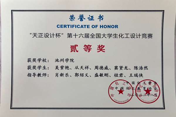 日前,由中国化工学会、中国化工教育协会主办、湖北工业大学承办的2022年“天正设计杯”第十六届全国大学生化工设计竞赛在湖北武汉举行,必赢官网学子的一项参赛作品荣获全国二等奖的好成绩。
