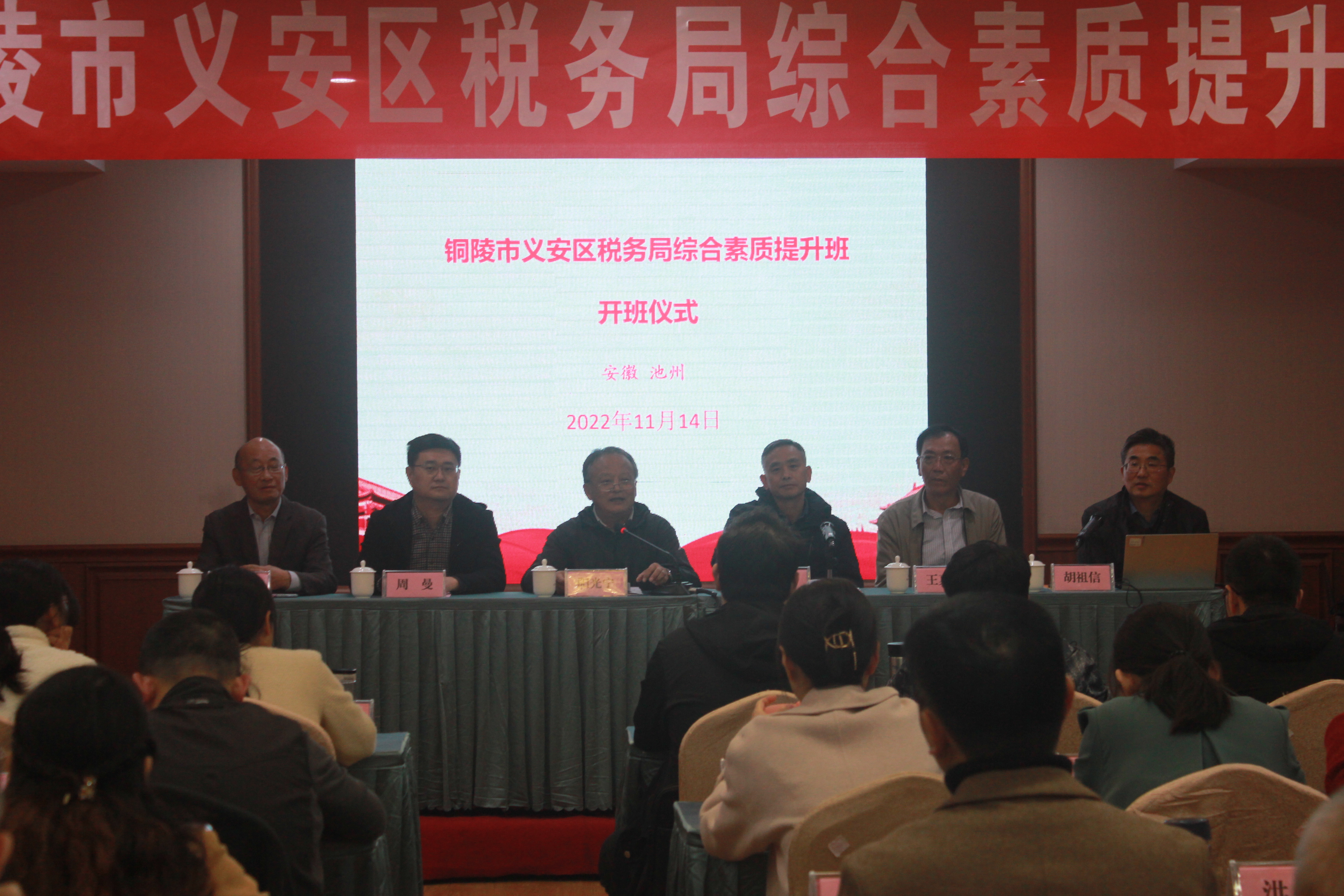 11月14日—18日,铜陵市义安区税务局综合素质提升培训班在必赢官网成功举办。14日下午,开班式在天水湾酒店七楼会议室举行。院党委委员、副院长阳光宁,铜陵市义安区税务局党委委员、副局长崔前开出席活动。