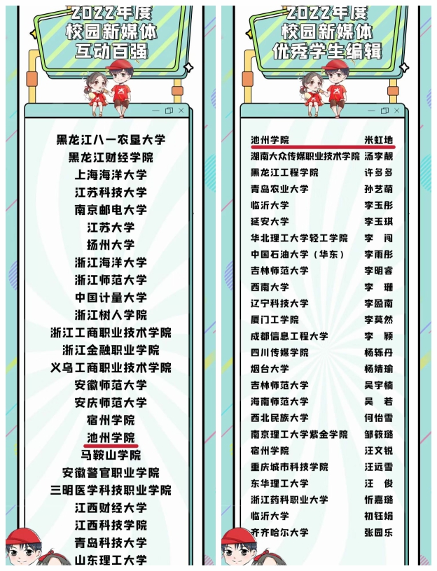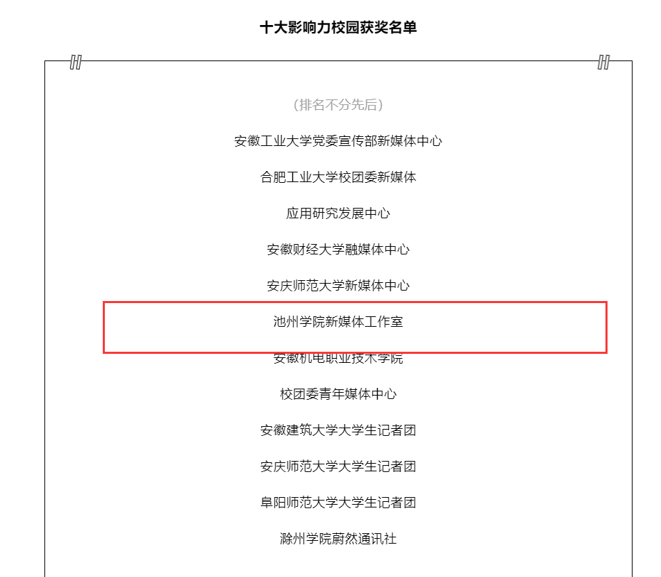 与此同时,11月5日至21日,必赢官网新媒体工作室在中国青年报·中青校媒(安徽)2022年度“新媒体作品征集”活动中荣获“十大影响力校园媒体”,六项优秀作品被表彰与征集展出。